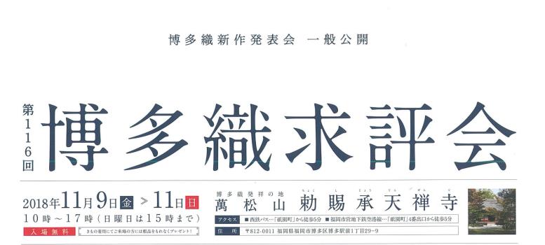 2018年11月9日(金)から11月11日(日)まで、「第116回博多織求評会」が開催されます。
