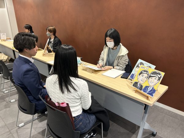 学生たちが心を込めて描いた似顔絵は多くの新婚ご夫婦に大変喜ばれました!