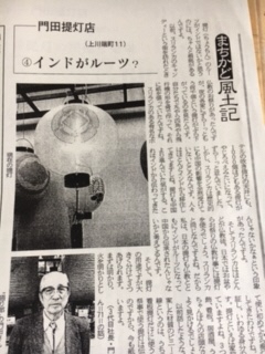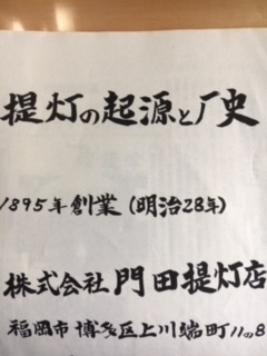 “川端散歩”という町歩きコースを企画して、その依頼にお訪ねした時、ガイド用に資料を準備して頂き、今思うと既に体調も万全ではない中、シルクロードを回ってまで調べた提灯の歴史を、傍で4代目に注意を受けつつも話してくださいました。