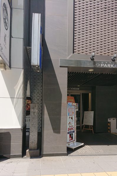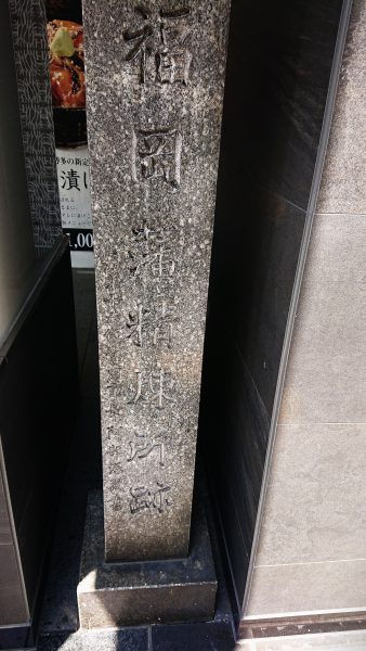 中洲の大洋映画劇場前の明治通りを挟んだ向かい側に製錬所跡の石碑が立っています。
