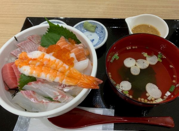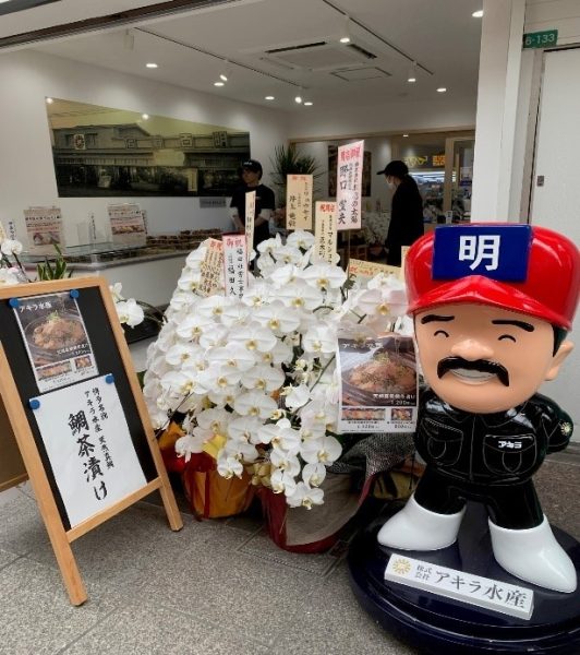 アキラ水産が2023年7月、川端商店街に出店しました。 現在の柳橋連合市場で創業し鮮魚仲買などを手掛ける水産会社の直営店です。 お店の前には創業者がモデルの人形が可愛くお出迎え。海産物やお刺身・お寿司コーナーが並び、奥のイートインスペースに持ち込んで食べることも出来ます。 今回頂いた海の幸たっぷりの海鮮丼のほかに、お店一押しの鯛茶漬けやお吸い物もあり、お魚の鮮度はさすがでした。 商店街にまたひとつ、行くのが楽しみな場所が増えました。