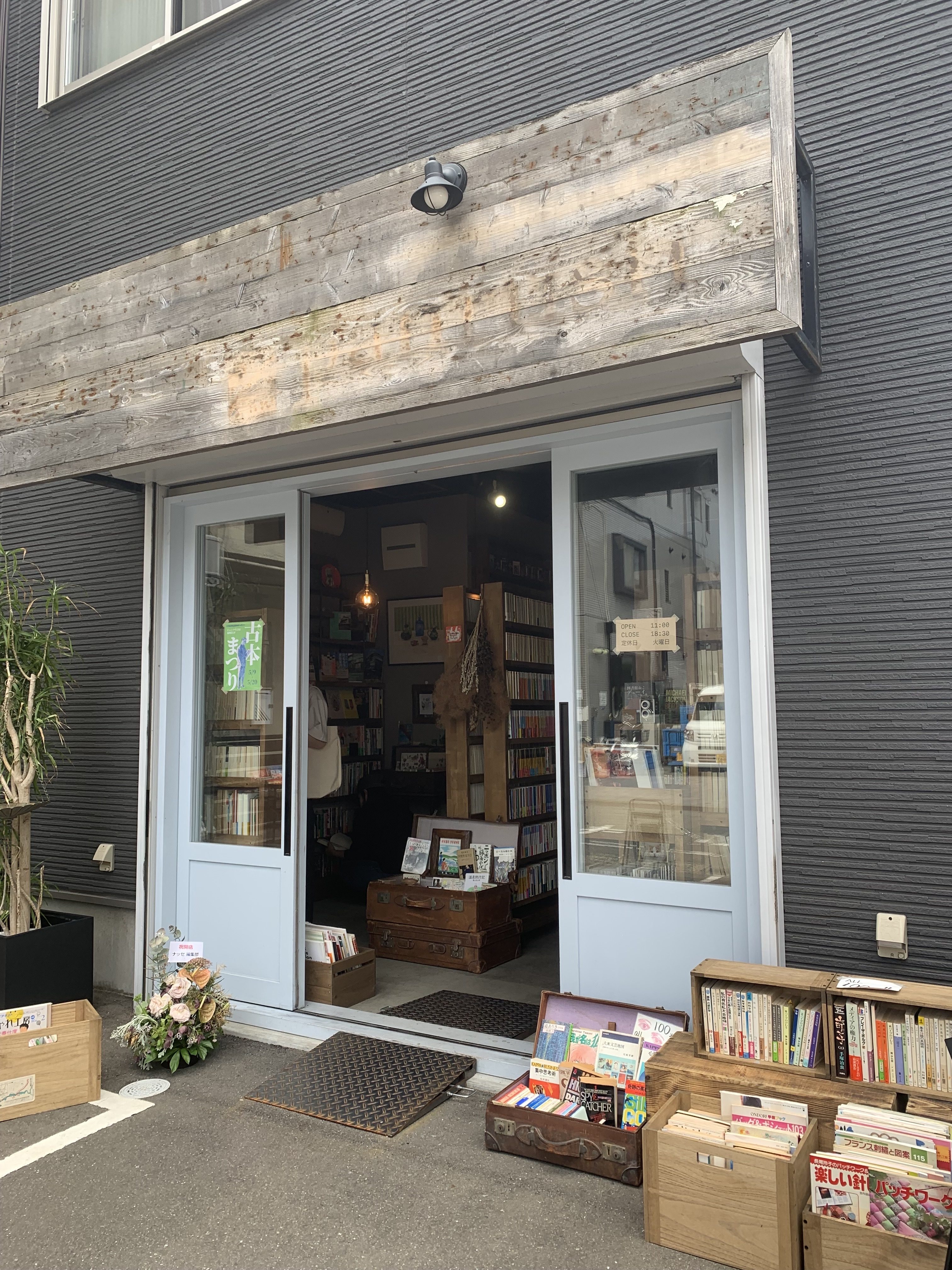 店内はレトロな雰囲気で木の本棚や皮のヴィンテージトランクにセンスよく本が並べられ、お客もひっきりなしに入店されます。休日を利用して遠くから足を運びました、という方もいらっしゃいました。