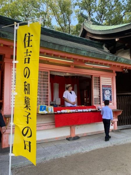 晴天に恵まれた11月の週末に住吉神社へ参拝に行った折、境内に「住吉の和菓子の日」と書かれた幟が立っていました。スイーツ好きなので導かれるように?お見世の前へ。