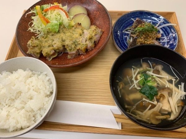 このビル地下1階には社員食堂「火と人食堂」があり、一般の方も利用可能です。お洒落なカフェのような作りで栄養バランスに配慮した「一汁一菜」をメインにスープカレーや季節限定メニューもあり、コーヒーは焙煎世界チャンピオンにも選ばれた「豆香洞コーヒー」が頂けます。券売機で食券を購入するところが社員食堂を感じさせていました。