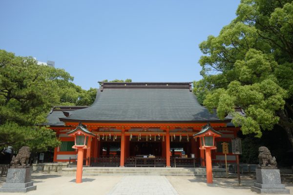 朱塗りの社殿に切妻造の「住吉神社」や黒田官兵衛の妹君ゆかりの地「妙円寺」、そして「住吉橋」架け替え工事にまつわる秘話を記した石碑等を巡ります。