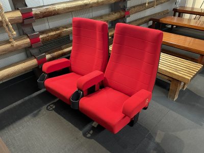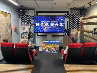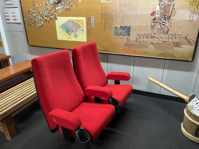 「博多町家」ふるさと館の展示棟に2024年3月末までで閉館となった大洋映画劇場の座席が4席移設されました! この赤い座席に愛着がある方も多いのではないでしょうか? 大洋映画劇場の座席に座って山笠の映像を見ることができますので、ぜひみなさん足を運んでみてください! 「博多町家」ふるさと館の営業時間等はこちらをご確認ください。