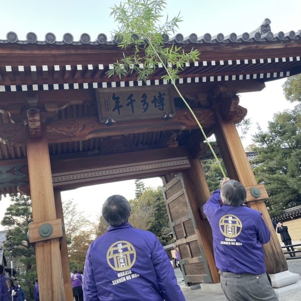 12月12日(木)に博多千年門(はかたせんねんのもん)ですす払いが行われました! 博多千年門・承天寺通り振興会主催で毎年行われており、参加者は、地域から愛され、観光のランドマークとしても活躍する事を祈りながら、門のほこりを払ったり、周辺の承天寺通りを清掃しました♪ ぜひお立ち寄りください♪