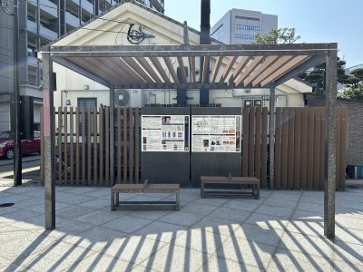 > 博多千年門横の広場に休憩スペースが完成しました!