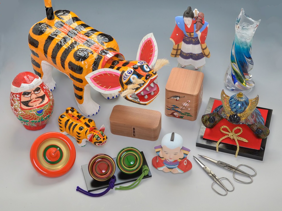 「博多伝統職の会」では,福岡県知事指定特産民工芸品である博多鋏・博多曲物・博多独楽・博多張子・マルティグラス・今宿人形の職人たちが活躍しています。