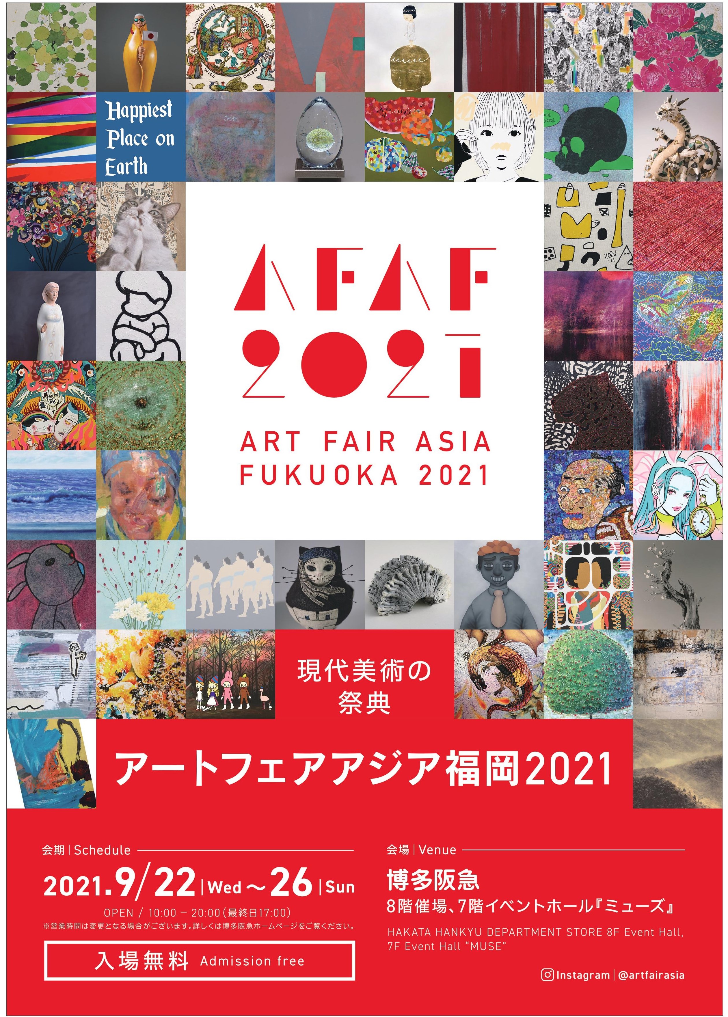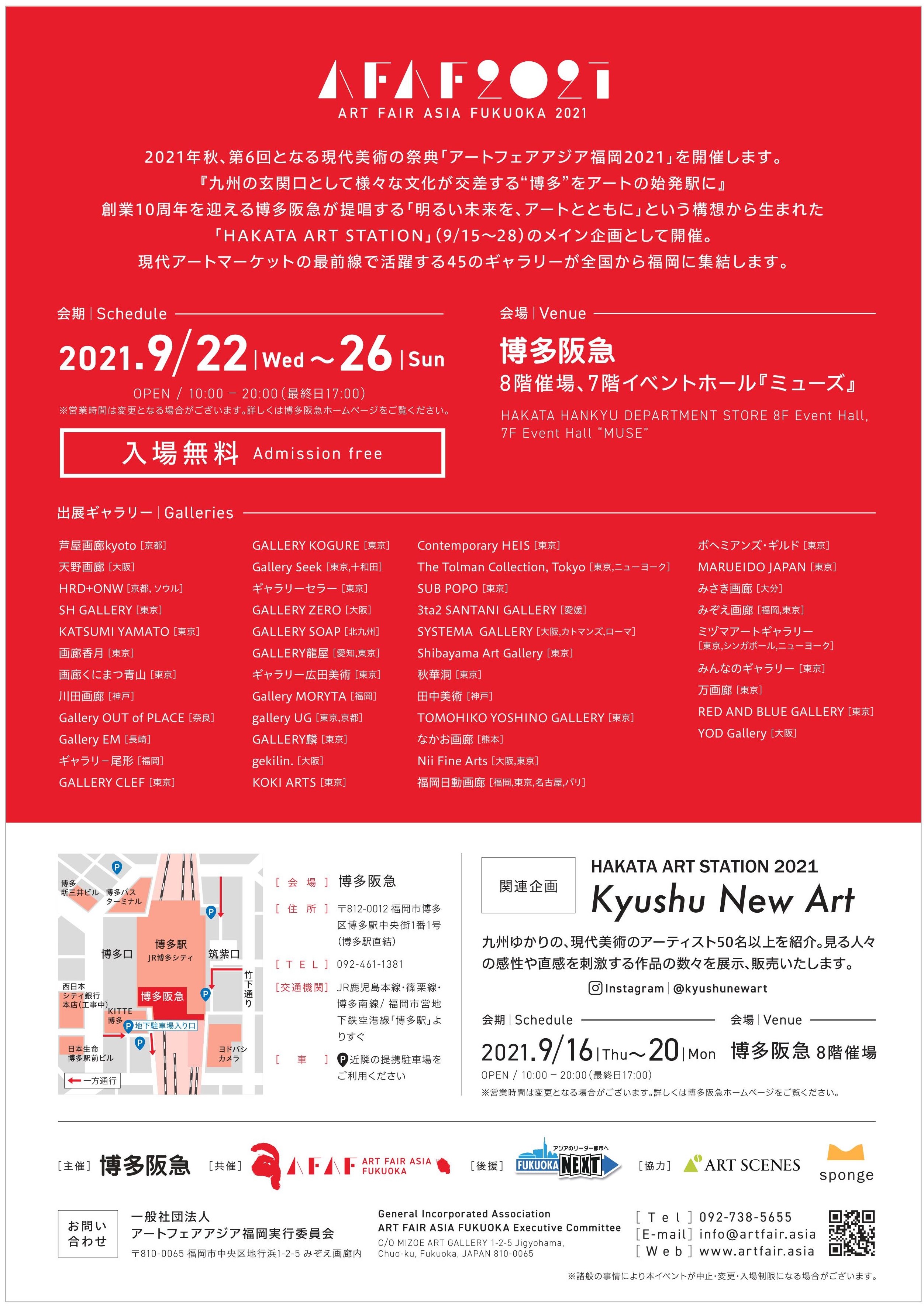 9 月22 日(水)から9 月26 日(日)までの5 日間、博多阪急にて、西日本最大のギャラリーショー「アートフェアアジア福岡2021(ART FAIR ASIA FUKUOKA 2021/AFAF2021)」が開催されます!