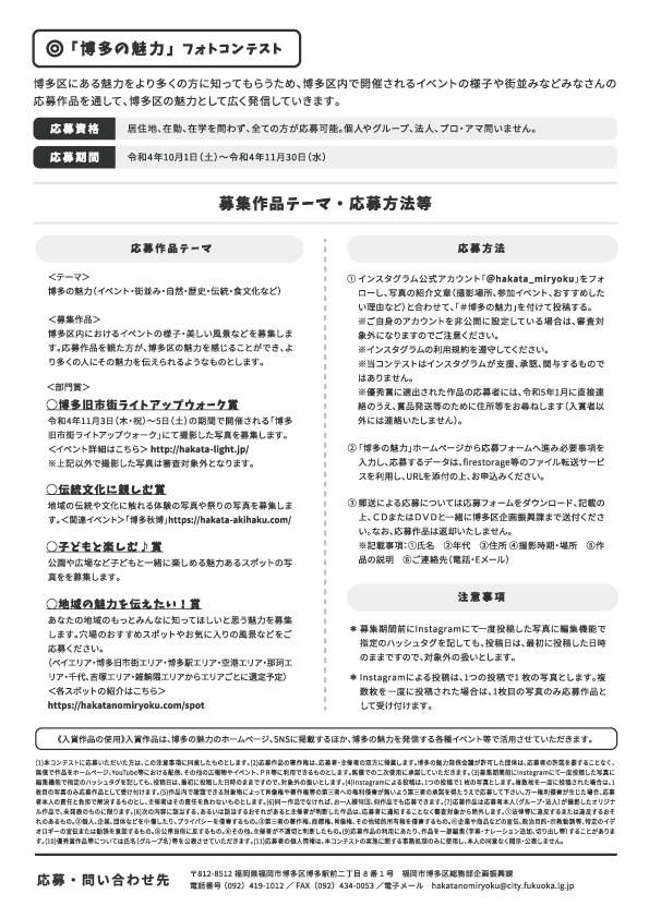 | 名称 | 博多の魅力フォトコンテスト開催 |