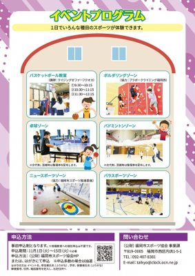 子どもが、いろいろなスポーツを体験できる「スポーツ体験ランド2022 in 博多区」が12月11日(日)9時半~12時半に開催されます🏀