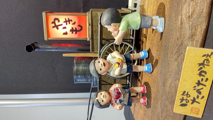 素焼きの人形と照明、博多弁を合わせたあかりのオブジェ「あかり絵」。