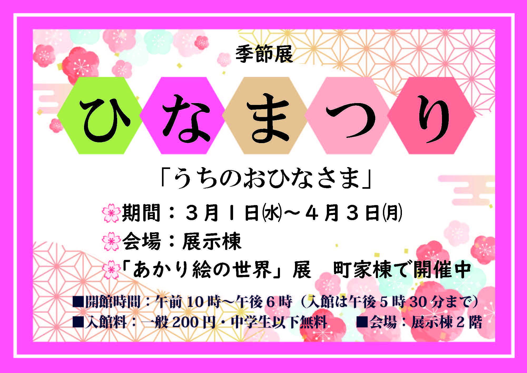 | 名称 | 季節展「うちのおひなさま」 |