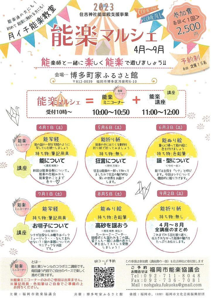 4月~9月の第1土曜日に「博多町家」ふるさと館にて「能楽マルシェ」が行われます!