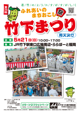 4年ぶりとなった今回は、JR竹下駅東口広場一帯に「ららぽーと福岡」を加え、福岡市消防音楽隊の演奏や太鼓響演会、まちおこし交流など、多彩な催し物を予定しています!