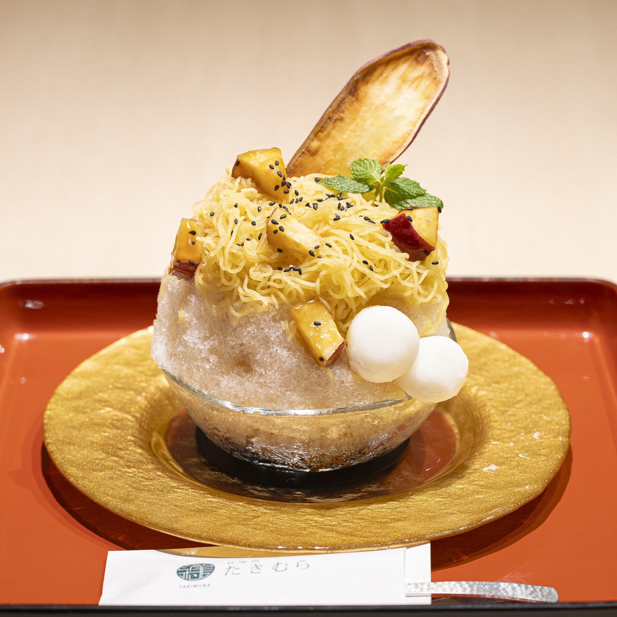 写真は「甘味処たきむら」から秋の旬の芋と栗を使ったかき氷です。一方、オクトーバーフェストに因んだビールとアテのセットメニューもご用意しています。