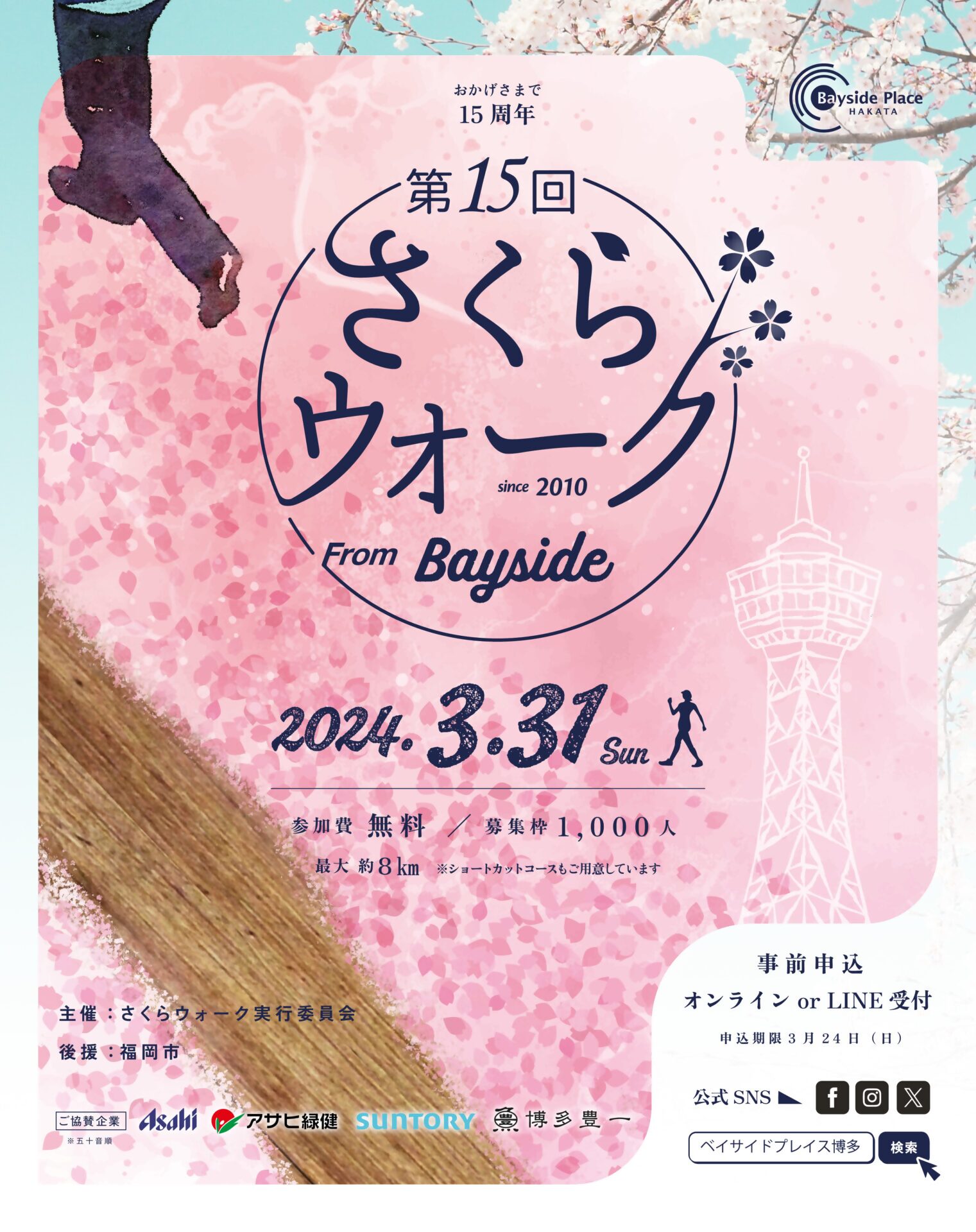3月31日(日)に「第15回さくらウォークfromベイサイド」が開催されます🌸