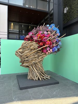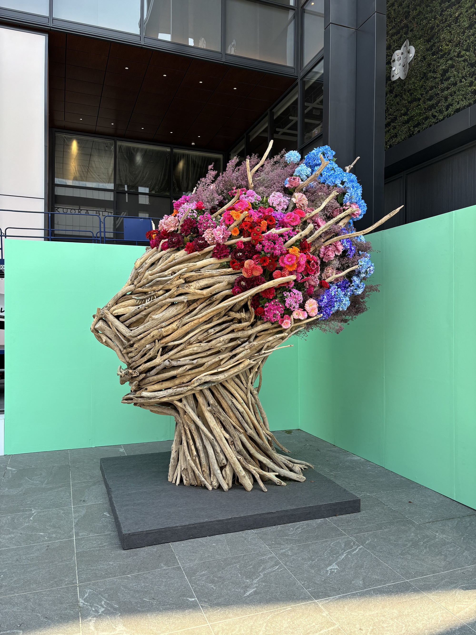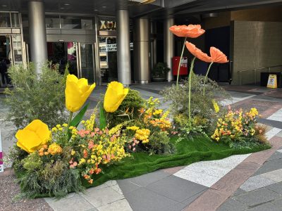 岩田屋きらめき広場には、2つのフラワーオブジェが登場。