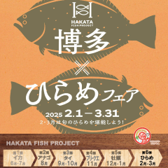 九州各地から新鮮な水産物が長浜鮮魚市場に集まり、多くの飲食店が立ち並ぶ “魚がおいしいまち福岡”。旬を味わう魚食普及フェア≪HAKATA FISH PROJECT≫を実施中です。