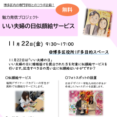 11月22日(土) 『いい夫婦の日』に、博多区役所1階の多目的スペースで、婚姻届を提出された方を対象に、無料で博多区内の専門学生が似顔絵サービスと写真撮影を行います!