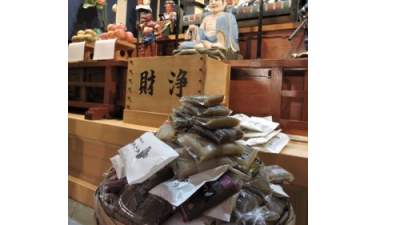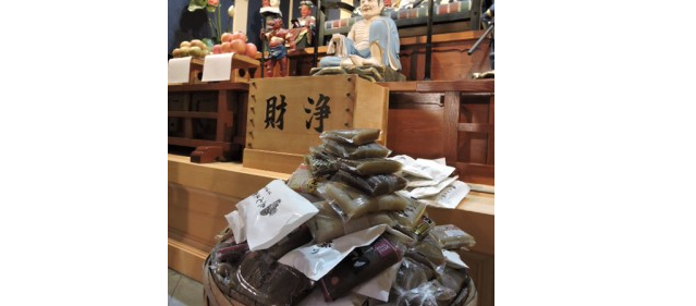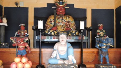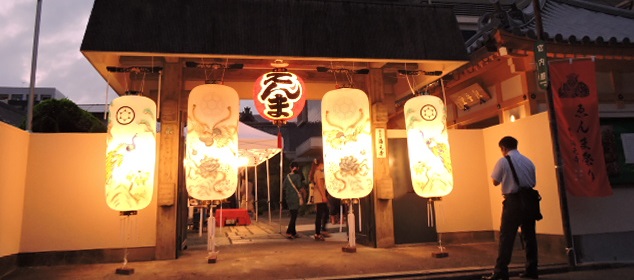 毎年8月16日に行われ、参詣者はコンニャクをお供えします。これは三途の川のそばにいる「奪衣姥(だつえばあ)」にお供えするもので「奪衣姥」は博多では「こんにゃく婆さん」と呼び親しまれ、お供えの功徳によって、子どもの病気を治したり、母乳の出をよくしたりしてくれるそうです。 祭りの際には、彩色豊かな十王図(冥土で生前の罪を裁く10人の王を描いた図)が掲示されます。