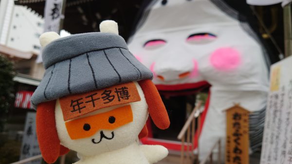 櫛田神社の大お多福面は、2月15日まで公開中。 博多にきたら見に行ってほしいんだもん。