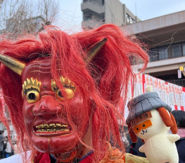 東長寺と櫛田神社の節分大祭に行ってきたんだもん! 大お多福面をくぐったり、鬼さんと写真を撮ったり…✨ 今年は2年ぶりに豆まきも行われたんだもん♪