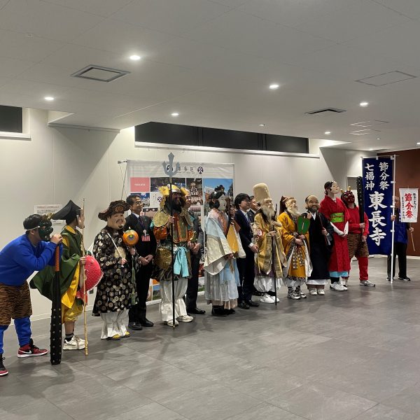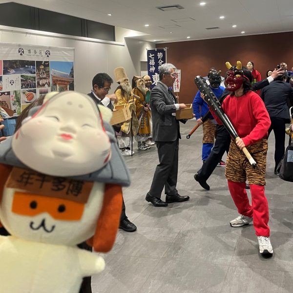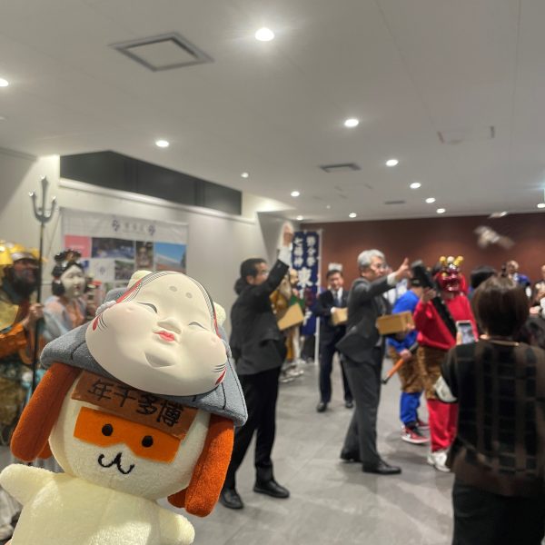 博多区役所に、東長寺から鬼と福の神さん達が、やってきたんだもん👹博多区長をはじめ皆さんで、招福まめまきをしたんだもん♪2月2日(日)・3日(月)には東長寺で節分大祭が開催されるので、ぜひ皆さんも行ってほしいんだもん♪