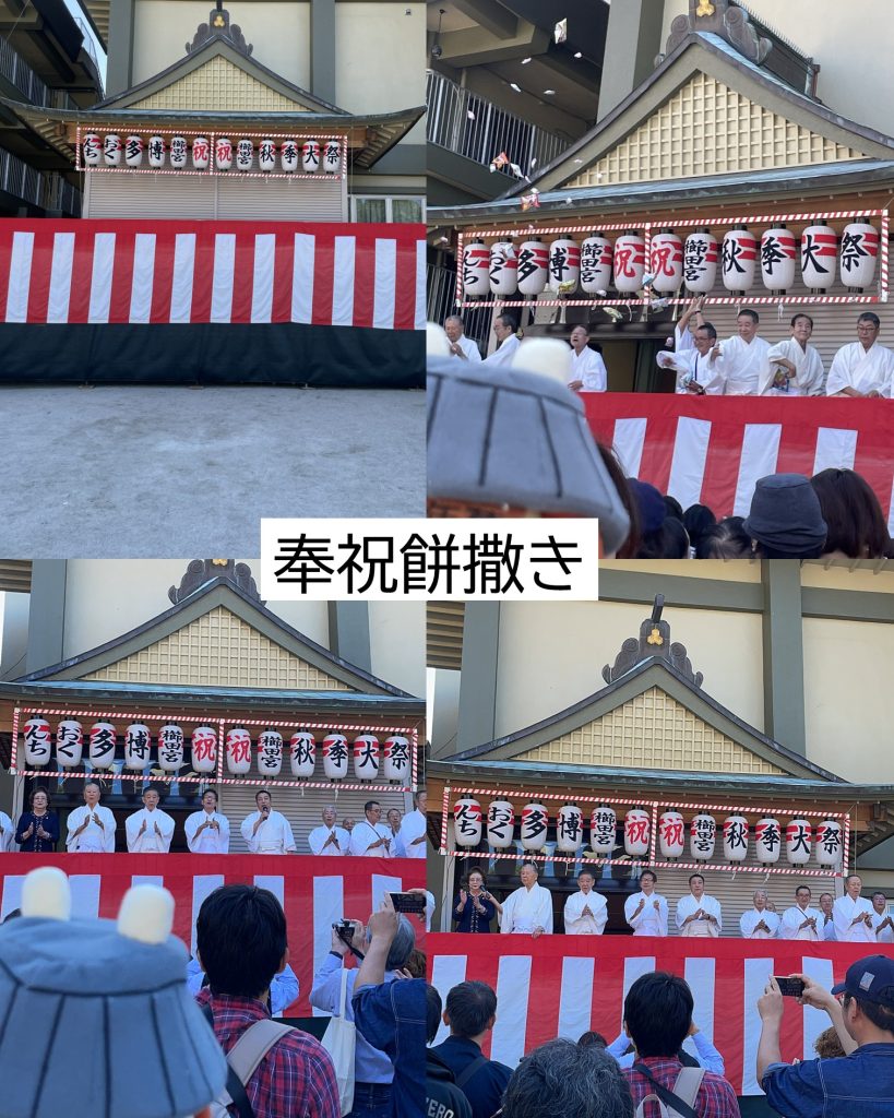 櫛田神社の秋季大祭博多おくんちにいってきたんだもん! 今秋は25年に一度の式年遷宮の年なんだもん♪ 博多おくんちの始まりを告げる御祠潔めは静かで神聖な神事だったんだもん。 奉祝餅撒きはたくさん人が集まっていて、祝いめでたと博多手一本で締められたんだもん。 御神幸では、牛車にひかれた3基の神輿が博多の街を練り歩く姿に魅了されたんだもん! 博多の秋を感じる心が躍るお祭りだったんだもん♪