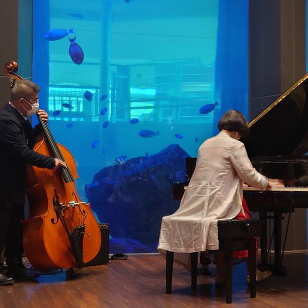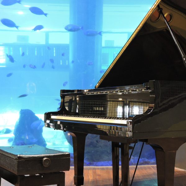 ベイサイドのストリートピアノは、大きなアクアリウムの前で誰でもピアノを弾ける新しい博多の魅力!