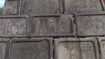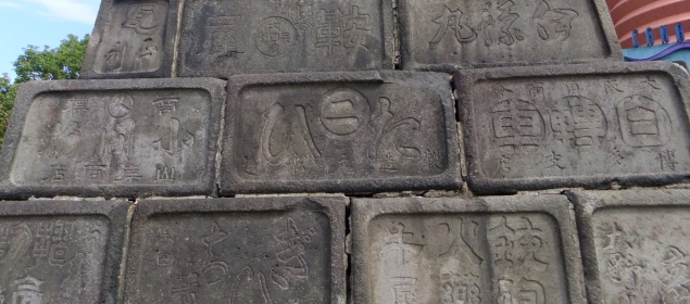 この石灯篭の四面には、びっしりと協賛した商店の屋号がびっしりと刻み込まれています。現在の広告塔の走りではないでしょうか。