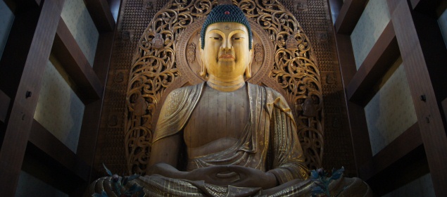 2階の大仏殿には木造座像では日本最大級の大きさを誇る福岡大仏があります。大仏の台座内には、地獄・極楽めぐりが設置されており、おどろおどろしい地獄絵巻のレリーフの先には、真っ暗な通路があります。手すりをたよりにを進み、途中にある「仏の輪」に触れれば極楽に行けるとか。