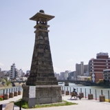 中洲の南端の清流公園に立派な石灯籠が立っています。高さ約10メートルの石灯籠は、明治33年(1900年)に博多の金山堂という漬物商・八尋利兵…